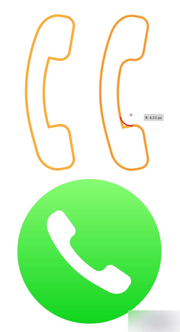 通过用删除锚点工具删除不需要的锚点,使听筒左边变得光滑,然后利用活动角使内部变得圆润。