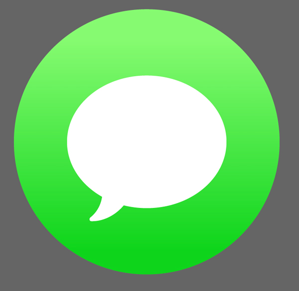 让我们用之前用过的相同绿色的底子形成短信图标。 制作一个 40 x 40 px的白色圆,然后延伸一点边,使形状压扁到 48 x 40 px。