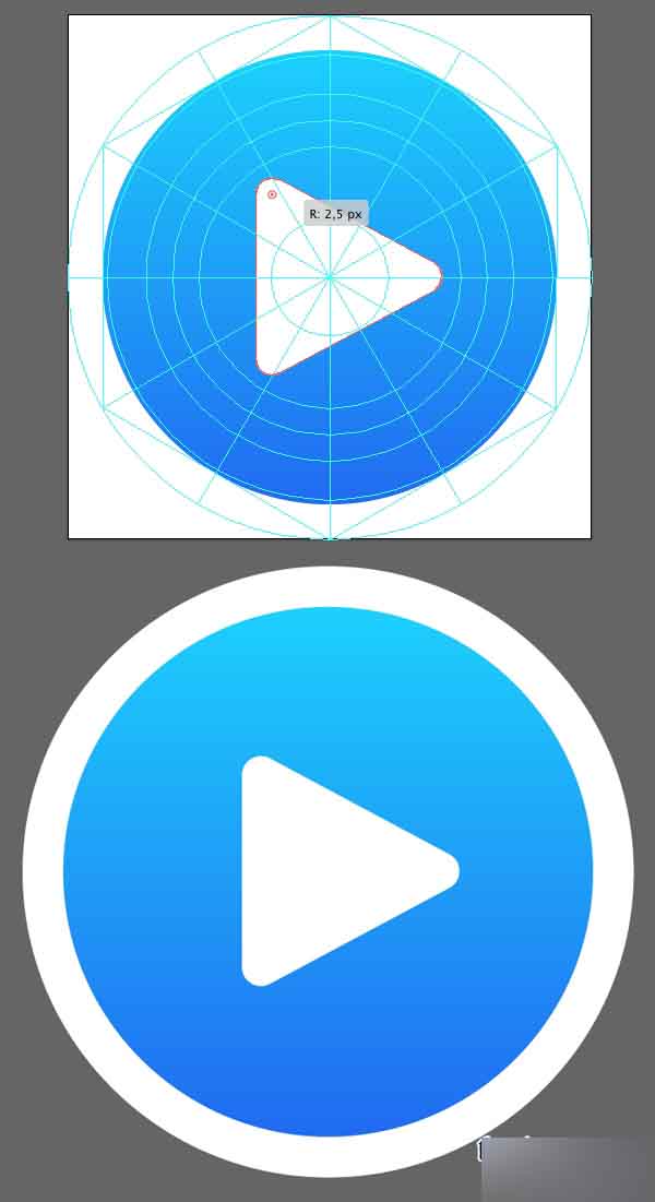 最后,使三角形的角有2.5角半径。 太好了! 这个图标已经到位,所以让我们转到下一个。