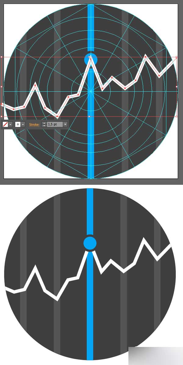 用钢笔工具(P)画一个有一个1.5pt 描边的锯齿状线条,添加到图上以结束这个图标的制作。