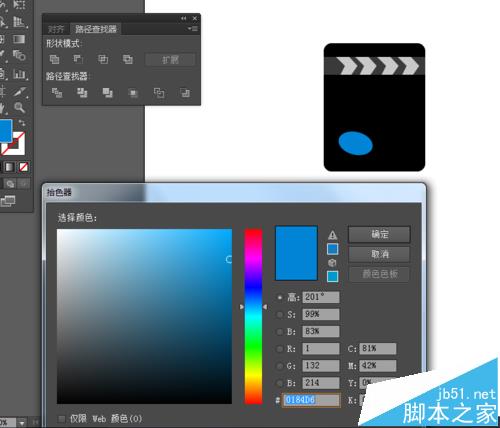 3、接着选择椭i圆工具,画一个椭圆图形,并填充颜色,再选择直线工具,画一条直线,描边改为4pt,如图所示