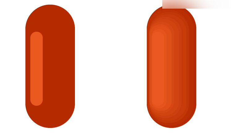 先绘制香肠的整体外观,20px*50px,半径为10的圆角矩形,颜色设置为R:180 G:43 B:0