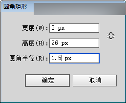 绘制一个3px*26px,半径为1.5px的圆角矩形,颜色为R:255, G:255 B:255