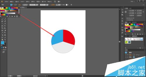 8、用白箭头直接选择工具选中左边灰色的,填充一个自己喜欢的颜色,小编换的是蓝色