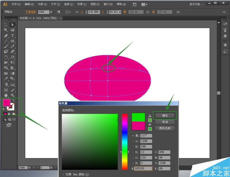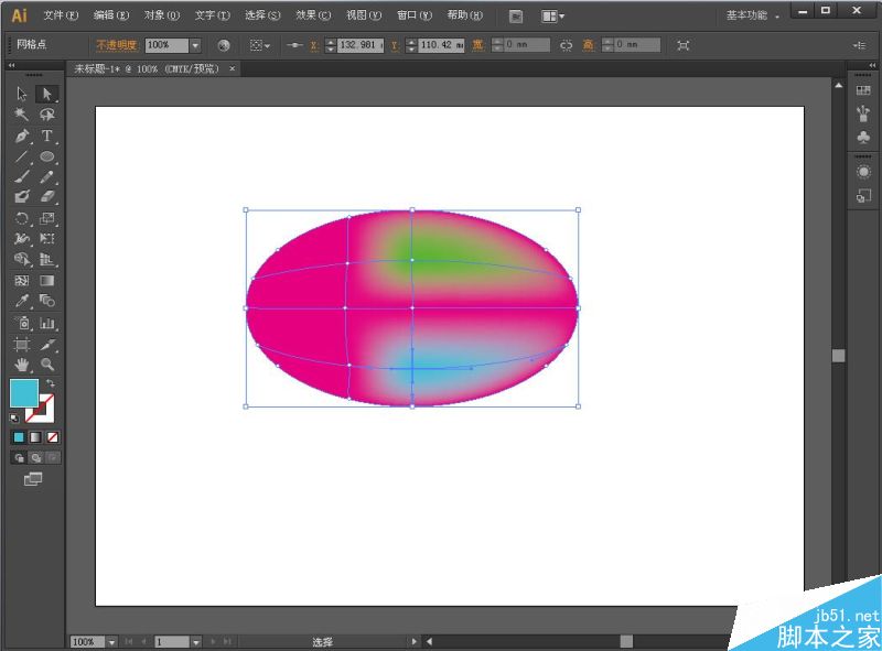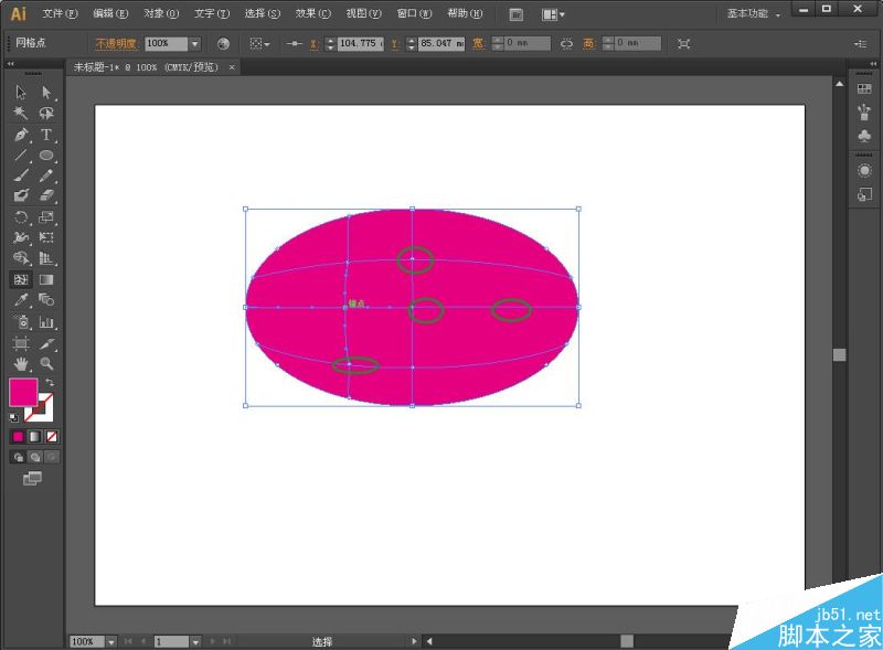 在哪个地方使用“网格工具”单击,那个地方就会是网线相交的一个交点;