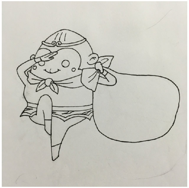 让"杏仁宝宝"穿上"悟空"的衣服玩COSPLAY,先在纸上将角色整体人物形象画出来。( 详细绘画技巧可参考《热门教程进阶版!教你给真人Q版形象做成好玩的Cosplay》 )