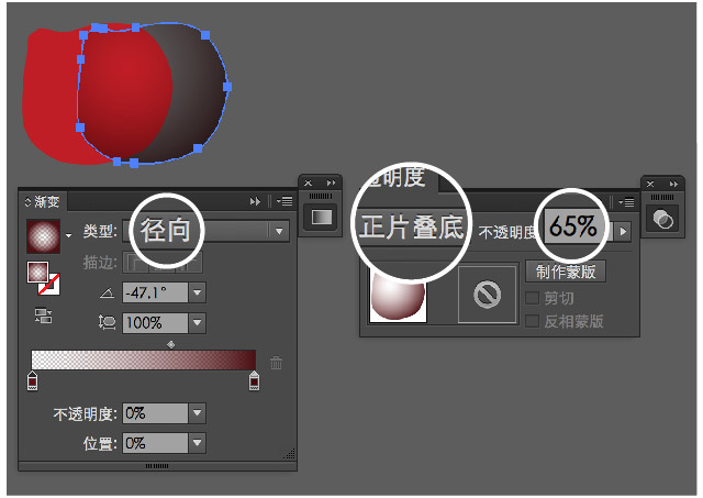 大礼包做得鼓一些,看起来更突出。所以叠加一层"径向渐变"的"深棕红色(与底色同色系)"。