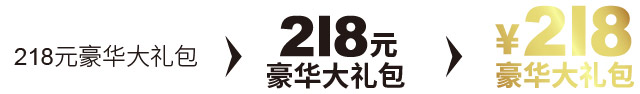 为了使"218元豪华大礼包"更有层次感,我们需要改变字体、字号、粗细。并做成渐变金色,倾斜一些,这样更能体现"豪华"的感觉,在画面中突显出来。