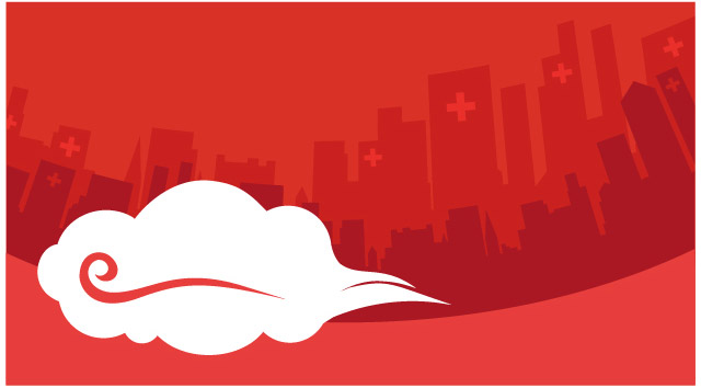 由于"杏仁猴"颜色已经很丰富,所以背景统一色系,高楼可以制作两层,通过深浅变化,增加层次感,并适量加上些"红色十字架"来代表医院。"筋斗云"绘制方式和"杏仁猴"一样。