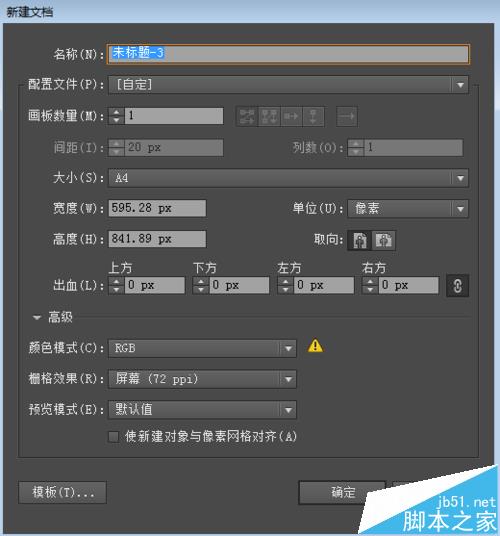 1、打开illustrator cc,新建文档,颜色模式改为rgb。因为屏幕显示色彩为rgb 72ppi的分辨率。