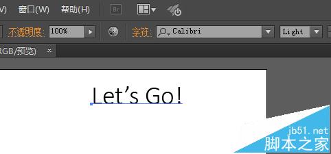 2、输入文字:Let's Go! ,加大字号,选择Calibri Light字体。字体样式看上去不错!
