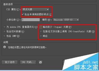 5、保存SVG格式方法:文件--存储为 文件格式为SVG,具体设置见下图。注意点开更多选项,关注高级选项中css属性下内容选项的选择,最后确定。