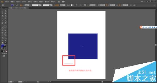 8、如果你想某一个地方放大,其他不放大的话,比如说你想让图中的矩形的左下角放大,那么你就选中缩放工具,早矩形右下角,按着鼠标不放,可以画一个矩形标示在这个矩形内的内容是需要放大的,