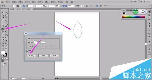 3、选择对象接着点旋转工具,按ALT将中心点往下拖单击,弹出对话款输入30°选复制。