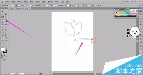 10、钢笔画出一条茎。再选宽度工具进行宽度调整,调整好选中对象右击-排列-后置于低层PS宽度工具往外拉变大,往内拉变小。