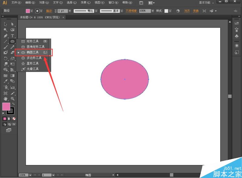 2、选择“椭圆工具”,在文档中绘制一个圆形,并填充颜色;