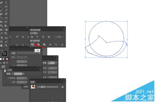 2、然后选择钢笔工具,勾出如下的路径,再选中圆形和路径到窗口—路径查找器—点击分割,如图所示
