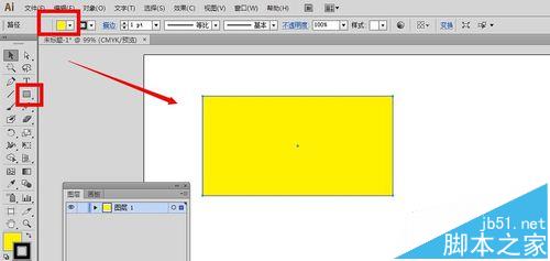 3、选中矩形工具,我们任意在画布上绘制一个黄色的矩形图形,
