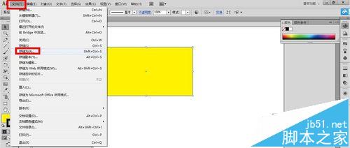 4、假如绘制好矩形图形就完成了我们的ai平面设计的任务了,那么我们就要开始存储源文件了,以防以后需要修改。点击“文件”——“存储为”