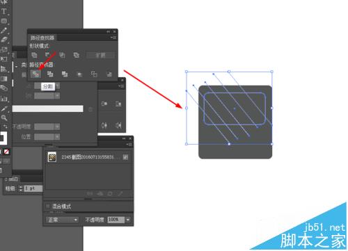 3、接着选中圆角图形和直线到窗口—路径查找器—点击分割,如图所示