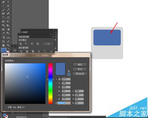 2、然后选择圆角矩形工具,画一个圆角图形,并填充颜色,如图所示