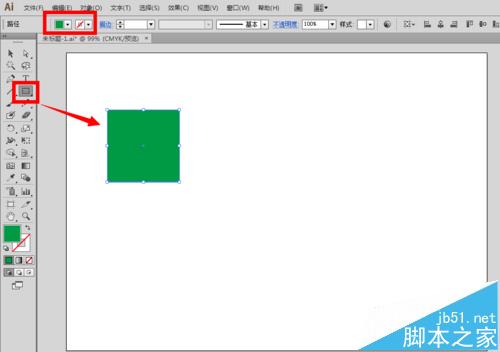 1、比如,我们想要制作一个正方体图形,怎么制作呢?按住shift键,使用矩形工具,在画布上大概绘制一个绿色的正方形