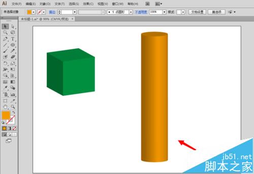 6、或者我们想要简单制作一个圆柱体的,先在画布上绘制一个正圆,比如填充颜色设置为橙色