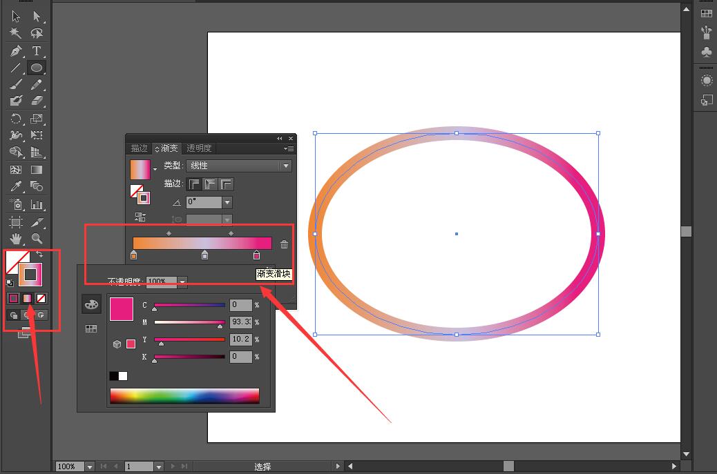 2、点击“渐变”,弹出渐变属性,大家可以自己设置颜色;