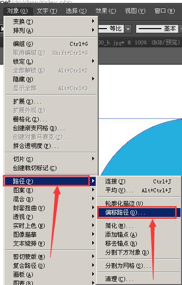 2、选择“对象”——“路径”——“偏移路径”;