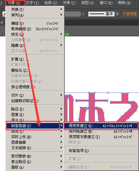 3、然后选择“对象”——“封套扭曲”——“用变形建立”;