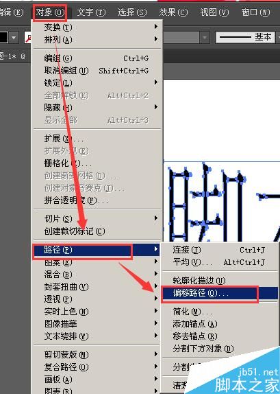3、选择“对象”——“路径”——“偏移路径”;
