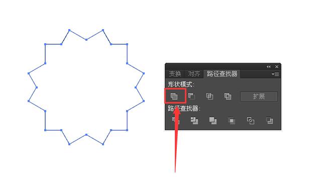 5、选择“路径查找器”,形状模式里的“相加”
