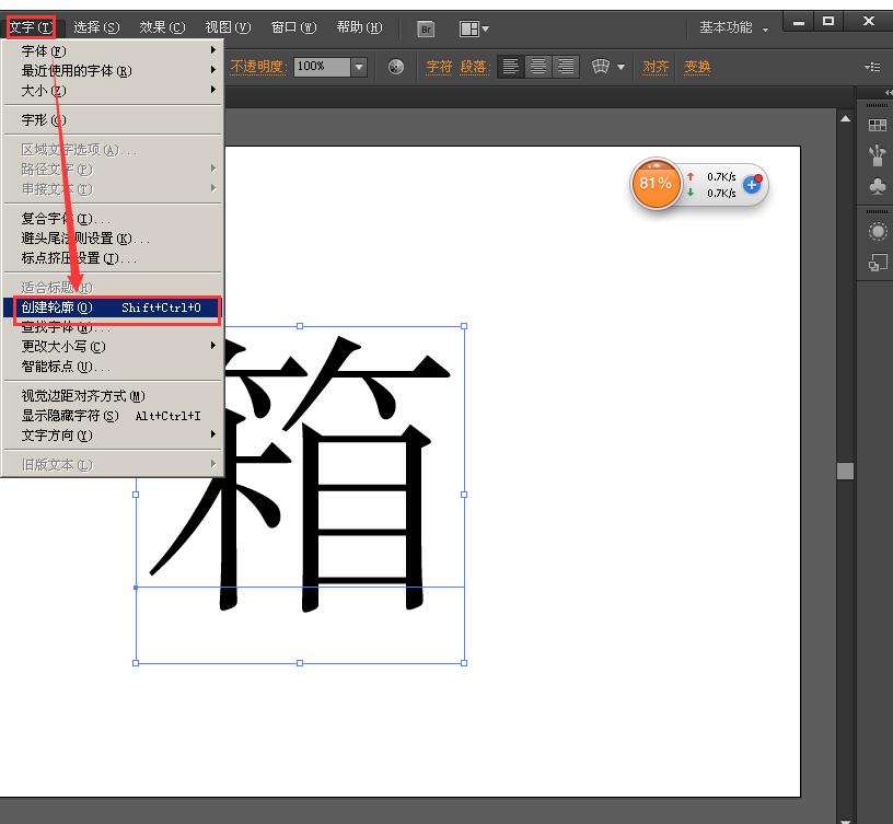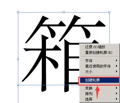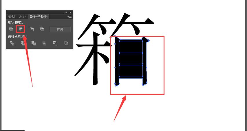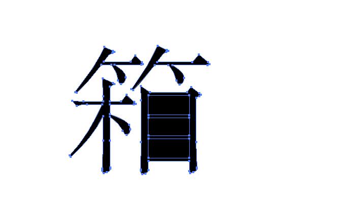 5、这时我们会看到箱的字体的“目”偏旁全部填黑;