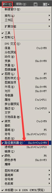 6、选择菜单栏中的“窗口”——“路径查找器”;