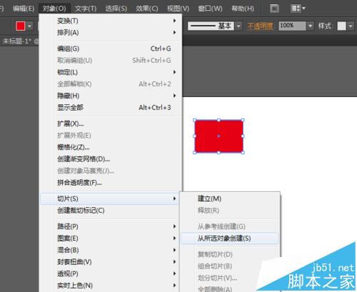 3、隐藏完之后呢,选中红色方框,然后按如下图所示选择对象--切片--从所选对象创建