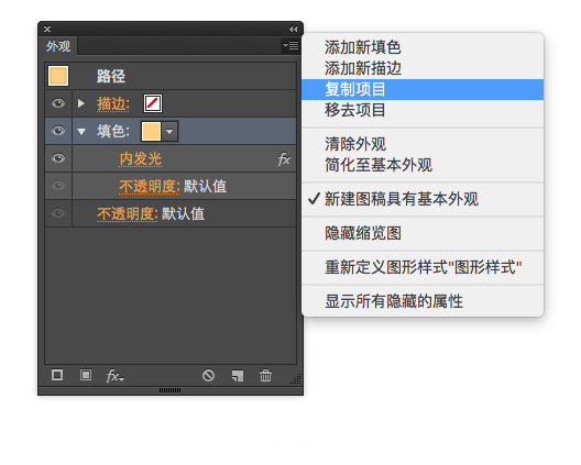 6、点击外观面板下方"fx"按钮