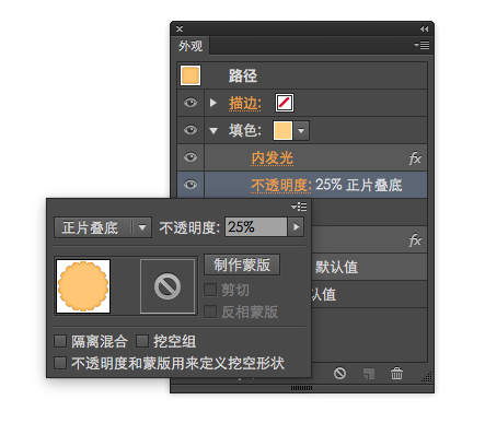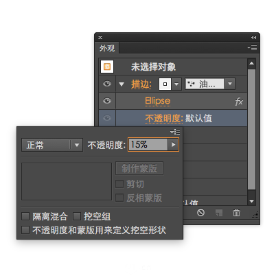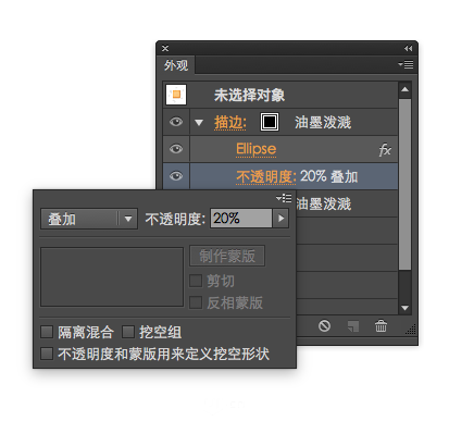 在外观面板调整描边的透明度和叠加模式