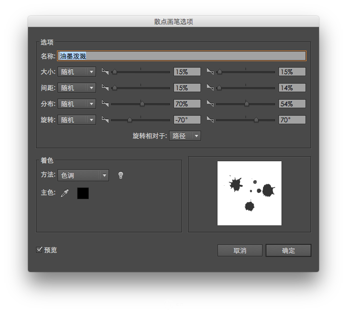通过上面这个面板可以设置画笔的属性