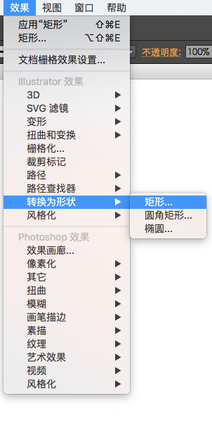 选择效果>转换为形状>矩形