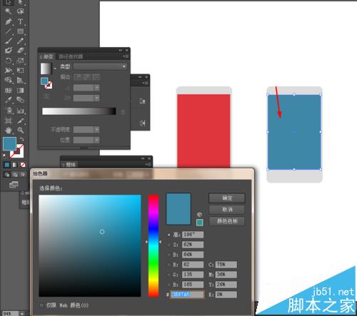 5、最后选择矩形工具,画两个矩形图形,并填充颜色,再选择钢笔工具,勾出如下的图形,并填充颜色,如图所示