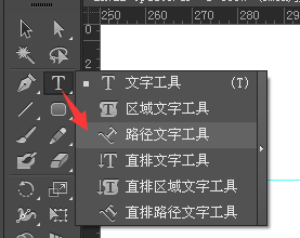长按“T”标志,会跳出对话框,选择路径文字工具可做沿曲线文字;