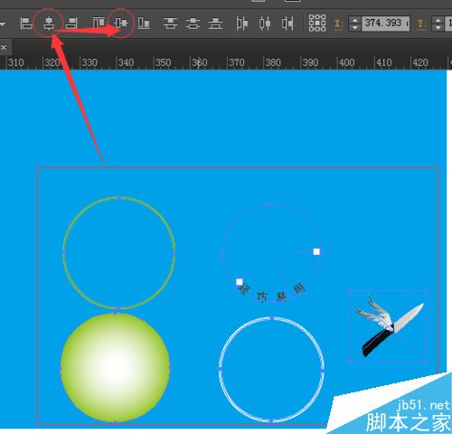 全选五个图片元素——选择先后选择水平和居中对齐——即完成