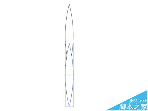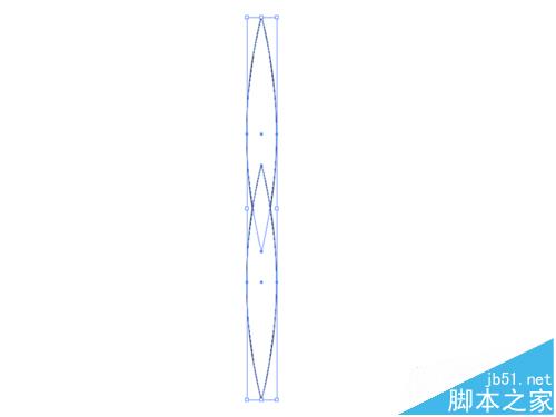 2、选择工具箱里椭圆工具,在画布上绘制一个长椭圆形状,接着选择直接选择工具选中上下锚点,点击工具栏中将所选锚点转换为尖角按钮。
