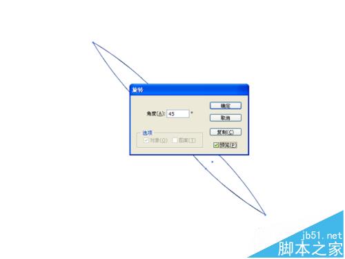 5、选择整个图形,双击工具箱里旋转工具,弹出旋转工具箱,设置角度为45度,点击复制按钮。