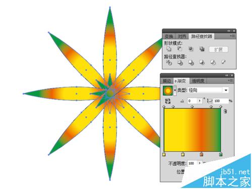 7、执行窗口-路径查询器命令,点击图形中心的原点,打开描边,设置为0.5个像素,点开渐变设置渐变类型为径向,