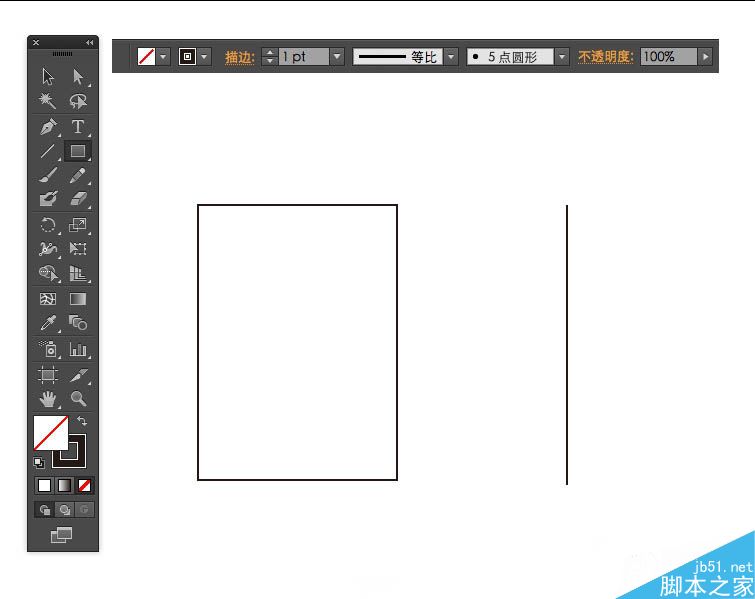1、打开AI,使用AI里的正方形工具和直线工具画2个图形,描边粗细随意,没有填充色。