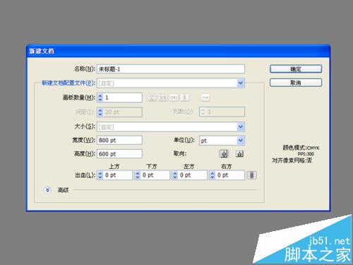 1、首先启动ai,执行文件-新建命令,在弹出的新建文档对话框中设置大小为800*600pt,点击确定。