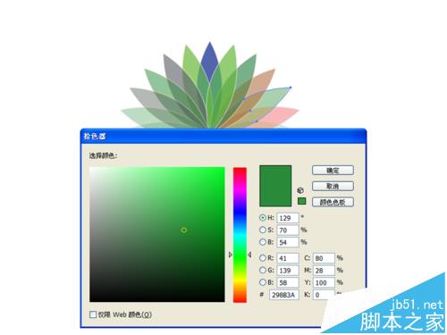 9、接着选择不同的花瓣双击前景色调出拾色器,选择不同的颜色进行修改,这样设置就会显得五颜六色了。
