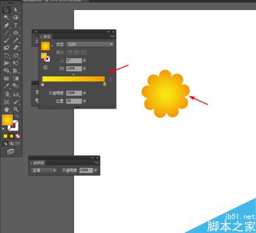 3、接着选择形状生成器工具,把所有的圆形形成一个图形,并添加渐变颜色,如图所示