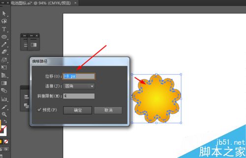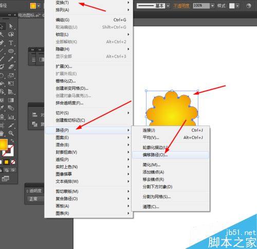 4、接下来选中图形到对象—路径—偏移路径,并添加渐变颜色,如图所示